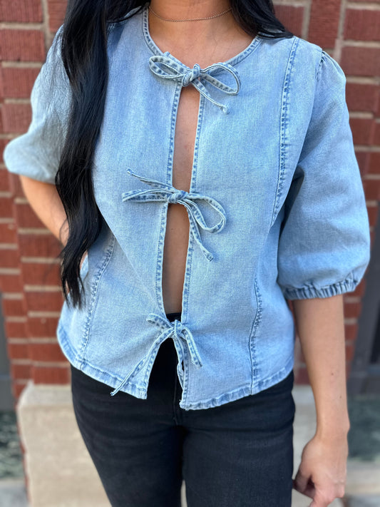 Saledenim bow tie top