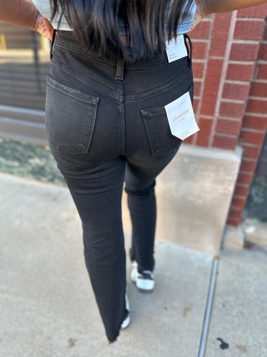 black raw hem crop flare