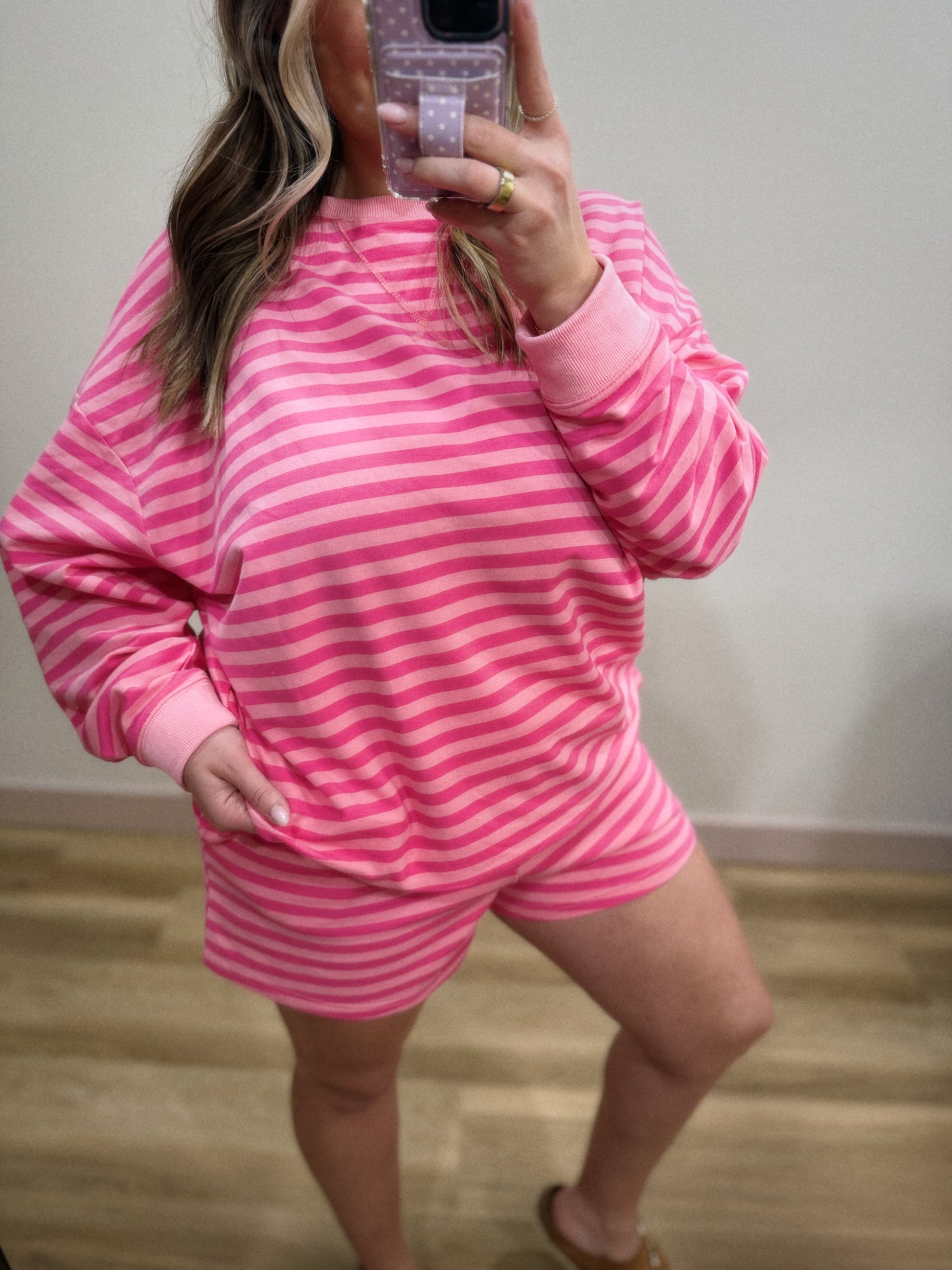 PREORDER SHIPS 3/7. If these sets sell out we will move to preorder shipping 3/7. These run a little oversized (not as oversized as the top runs!), I did end up sizing down to a medium but truly could have gone either way in the shorts! perfect to wear solo or as a set. Inside is a French terry type material making these ideal for summer & spring break!