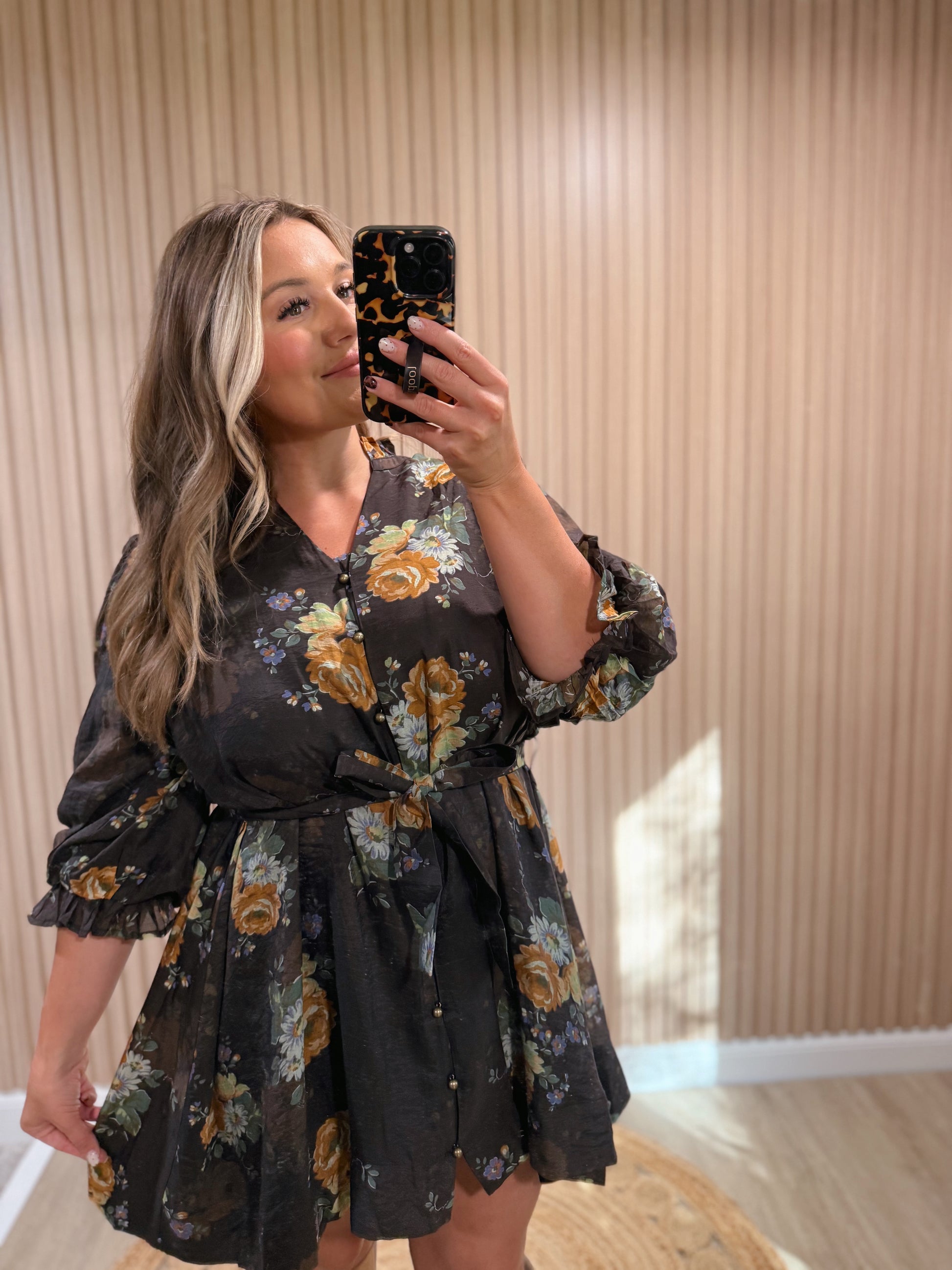 This mini floral dress is super adorable! It's a fun touch of flirty and elegant.