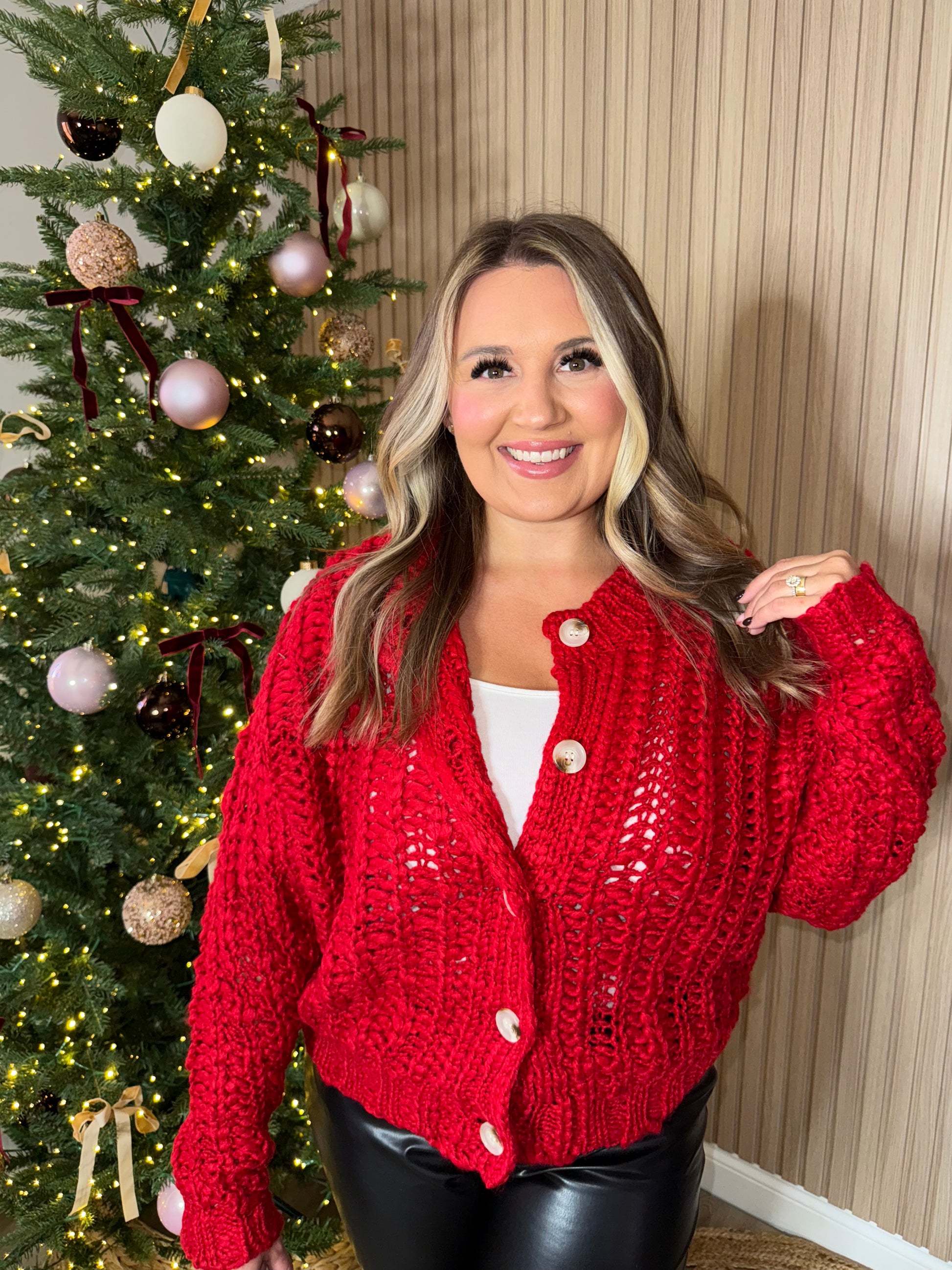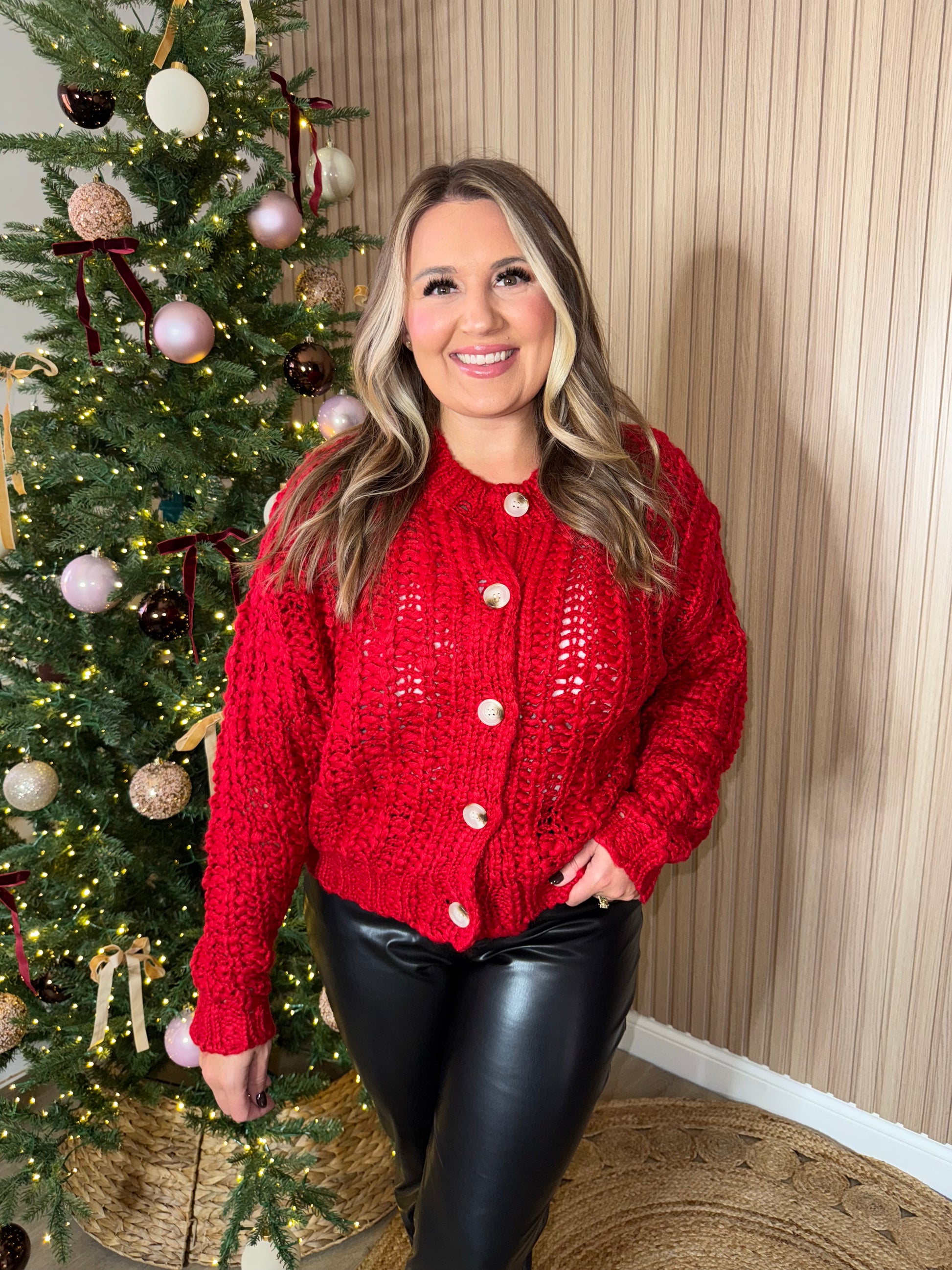 Functional buttons, gorgeous red color. Runs big, large fits like XL.