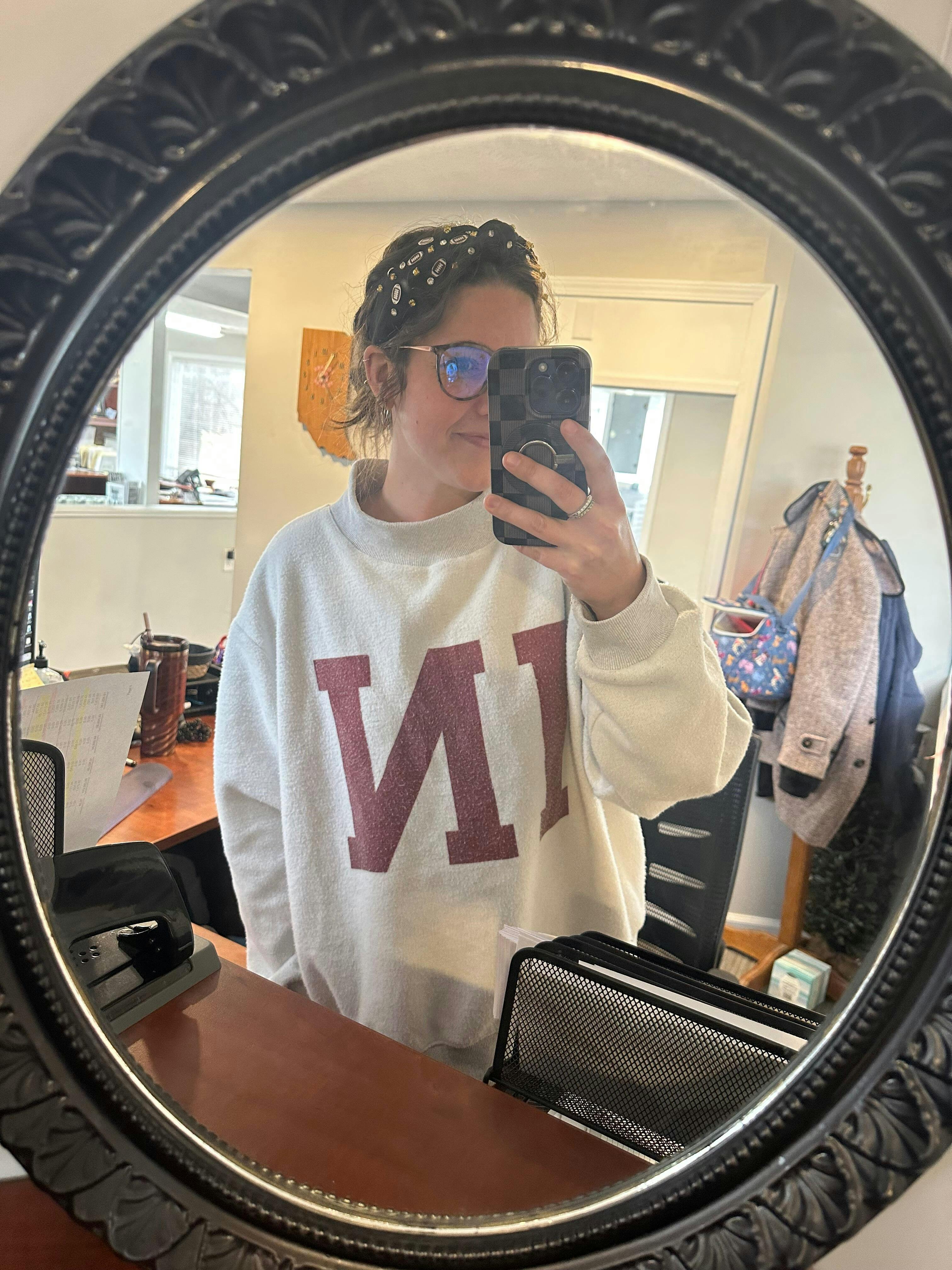 Reversible oversized boxy crewneck with mock neck! The cutest, coziest fall in the Midwest staple. If you love a good oversized crew, this is the one you'll wear on repeat all winter long! Indiana reverses to IN.